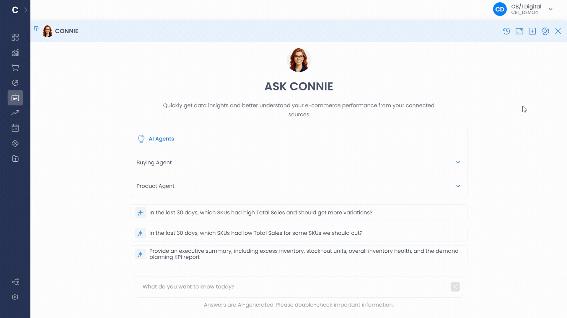Know what changed and why it matters. Conative's Analyst agent gives your merchandising team a clear, continuous read on what's moving, what's stalling, and whether your forecasts are holding up — week over week, month over month.